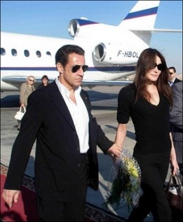 I love the new French President, Nicolas Sarkozy. I’m not sure what his politics are like, but I love the press he generates. Yesterday he was seen arm-in-arm with his model/singer girlfriend, Carla Bruni, landing in Luxor Egypt for some rest and relaxation.
