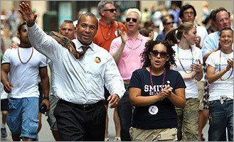 Recently I was told that Gov. Patrick made history last year when he became the first sitting Governor of any state to march in a Pride Parade. This year his wife and daughter joined him. I know there are many who are not impressed by Deval Patrick, but I am not one of them. I thoroughly respect Patrick’s commitment to supporting equality and not compromising in the face of adversity whether it is championing the right for all to marry or now showing that Governor or not – he stands by his lesbian daughter. Bravo Deval – you have my vote if you decide to run for re-election.