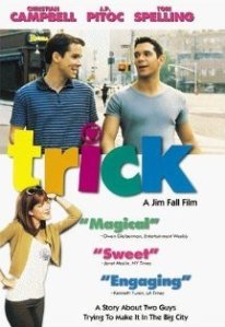 I just caught the end of the gay romantic comedy, Trick. I really loved this movie when it came out in the late 90s. Tori Spelling did a bang-up job as a horrible actress (or was that type-casting?) And the two leads were both handsome and adorable. I had forgotten about the film and the catchy showtune “Into You” until I stumbled upon it on Logo tonight. My favorite scene remains the pep-talk that Ms Coco Peru gives in the bathroom – I still stifle a laugh when I think about her diatribe.Do you recall this movie? Probably not, unless you are gay. Here’s a clip of the trailer, which I found on YouTube (thank goodness for YT).