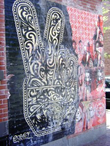 The South End – a long-time enclave for many local artists – has recently seen more public art and sometimes residents get up in arms about such public displays. With very few exceptions, I am generally very excited and like to see such creative expressions. Earlier this year when the Shepard Fairey exhibit opened at the I.C.A., there was a lot of anger directed at Fairey because of some of his public works which the city labelled as ‘vandalism’. I believe that he actually had to appear in court and was formally charged for some of his work, which I think was a shame because I love seeing his murals. There remain at least 3 or 4 murals in my neighborhood and I would love to see more. The image below is in the South End on Shawmut Street.