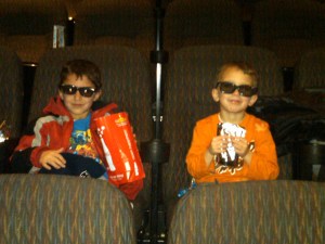 I took the picture above of the two boys as they waited with breathless anticipation for the movie to start. They had everything they needed: 3D glasses, juice boxes and more popcorn than they could consume in one sitting.