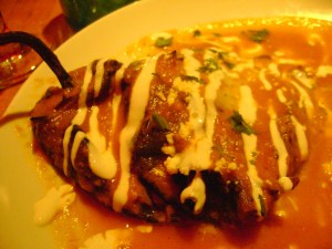 Before our meal, I started with a delicious martini at the downstairs bar. My friends all indulged in a variety of margaritas; of which the passion fruit seemed the best. The service, starting with the bartender and including the patient waitress who helped us with our meal, was good from start to finish. While waiting for the main dishes to come out it was suggested we order sides of guacamole and salsa. These proved to be my favorite part of the meal. If dinner is not an option, grabbing some drinks and delving into the oversized portions of guacamole or homemade salsa is a great alternative.