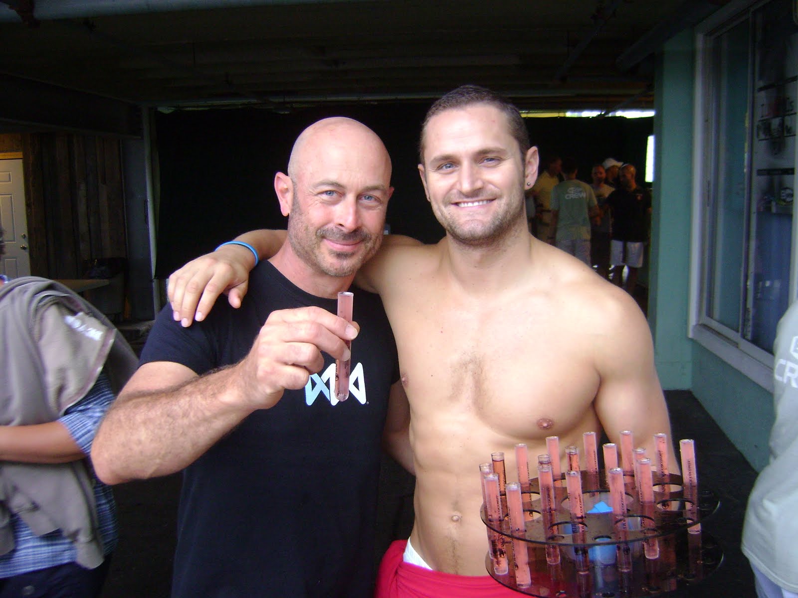 The photo above is of Sergio and one of the many helpful young men distributing rum test tube shots at the Boatslip Tea Dance this afternoon.