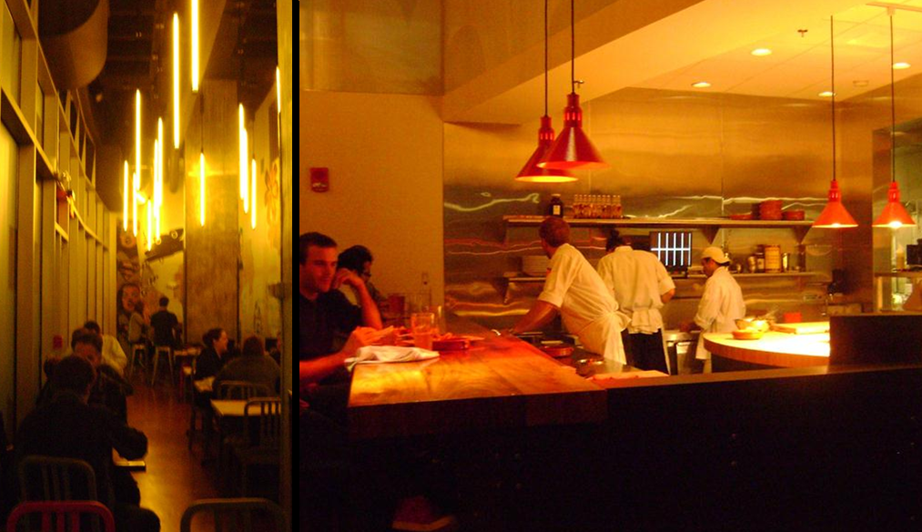 The restaurant / bar is located in the heart of Kendall Square in Cambridge and joins a handful of other new dining establishments in the area.  Local media has joked that Firebrand Saints is marketing itself to MIT, Mensa-types, and FBS plays this up with cheeky touches like bathroom signage written in Japanese, reminding employees to wash their hands.  The bar must have 20 outlets for one to charge your phone, tablet or laptop, and there is plenty of visual stimuli to keep even a dull date going with the ever changing LED programmed words racing behind the bar and distracting wall projections.