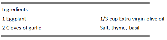 Roasted eggplant is extremely flavorful and a healthy snack best eaten on crusty bread or over a salad with a squeeze of fresh lemon juice or drizzled with balsamic vinegar. With eggplant selling for less than a $1.00 a pound you can purchase a large eggplant cheaply; another plus, there is virtually no clean up.