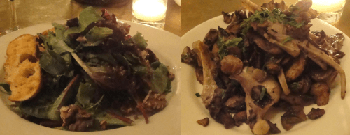 Metropolis Cafe first opened in the South End in 1995 and is the first of what are several successful restaurants all owned and operated by The Aquitaine Group. Dinner for two including a shared appetizer, two main plates and shared dessert (not including drinks and tip) costs approximately $50-$60. Chef William “Billy” Nurse and the loyal and knowledgeable waitstaff provided a pleasurable dining experience. Since we hadn’t been to Metropolis for dinner in nearly 5 years, we asked for and ordered some of their most popular plates. We started with their green salad that came with two crispy crostini, toasted walnuts and a delicious Dijon vinaigrette ($7.95) as well as the roasted mushrooms ($7.95). If you enjoy mushrooms, I really would suggest requesting extra bread, which the restaurant will happily bring to your table, and order the mushrooms.