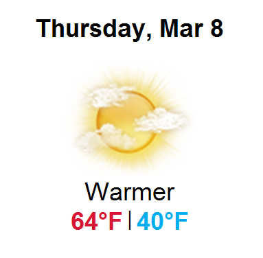 With temperatures expected to exceed this lovely forecast you’ll notice many Bostonians walking around with a smile on their face. Get out, enjoy the day and say “hey” to spring.