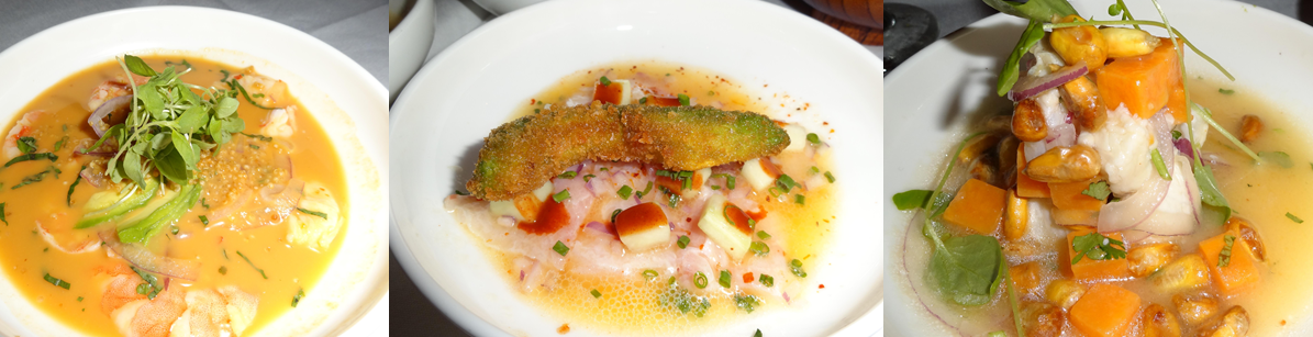 After the Trio de Guacamoles were cleared we ordered a tasting of three different Ceviches. The chef included a special ceviche for us which was not on the menu and included fish from the special plate of the night. It is depicted below to the right. This turned out to be my favorite because of the inclusion of mango, but all three were tempting.