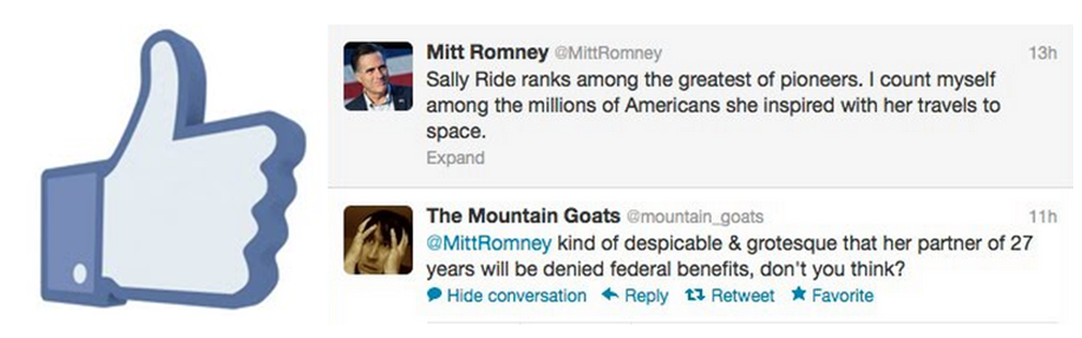 MITT ROMNEY TWEET: Sally Ride ranks among the greatest of pioneers. I count myself among the millions of American she inspired with her travels to space.