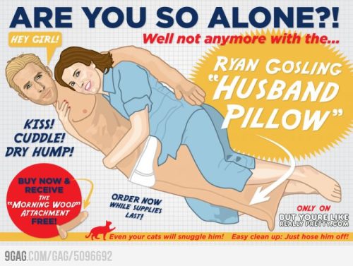 Wouldn’t it be great to snuggle up next to Ryan Gosling in bed this morning? I love the red print below that says “easy clean up: just hose him off“. Should someone ever create this, I’m afraid to think about how many might actually sell.
