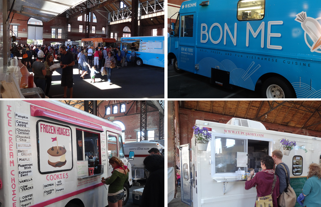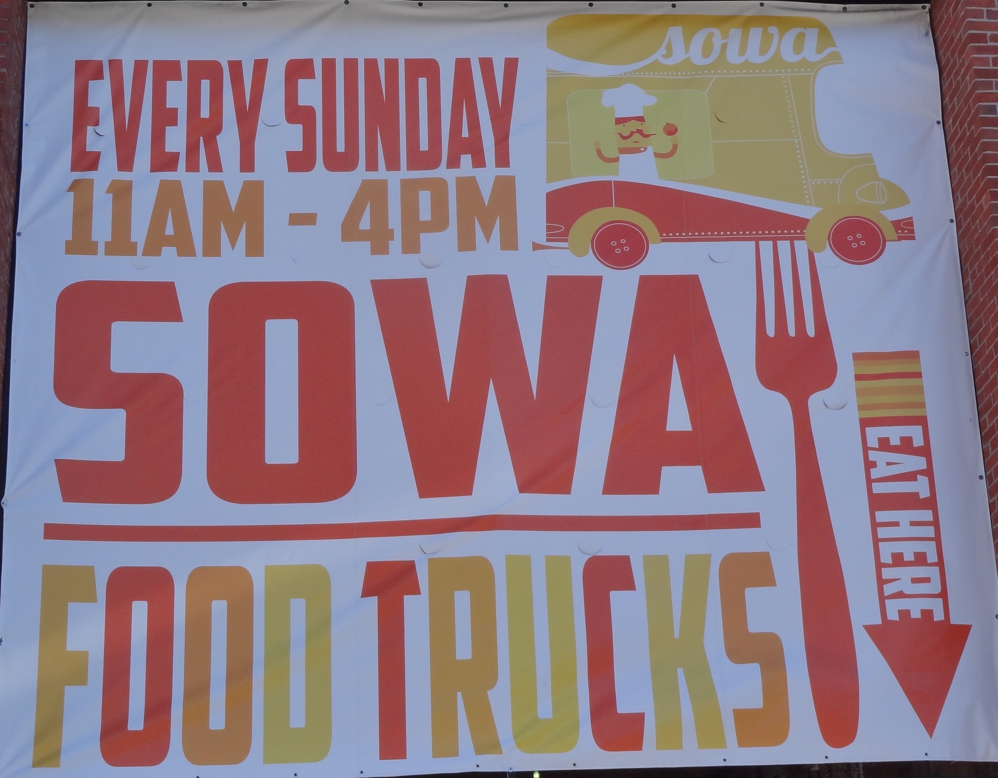 Starting this past weekend the food trucks moved to a vacant building (where the SoWa Open market originally started – by Gaslight). The food trucks popularity was causing so much congestion near the artisan booths something had to be done and this seems like the perfect solution. Just one block from the artisans, the vintage market and the farmer’s market about a dozen food trucks set up shop.