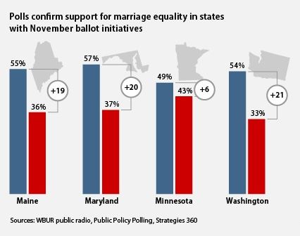 It will be interesting to see how same sex marriage ballot initiatives fare this November in the four states featured in the above graphic.