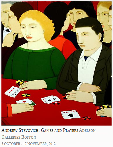 Friday night’s reception will include a cocktail reception for Andrew Stevovich: Games and Players, an exhibition of recent works by the artist which continues through November 17th. Future plans include exhibiting the work of Jacob Collins, Marcus Reichert, and Winfred Rembert. Chalk up this South End resident as wicked happy to see this addition to the neighborhood. Best of luck to Adelson Galleries.