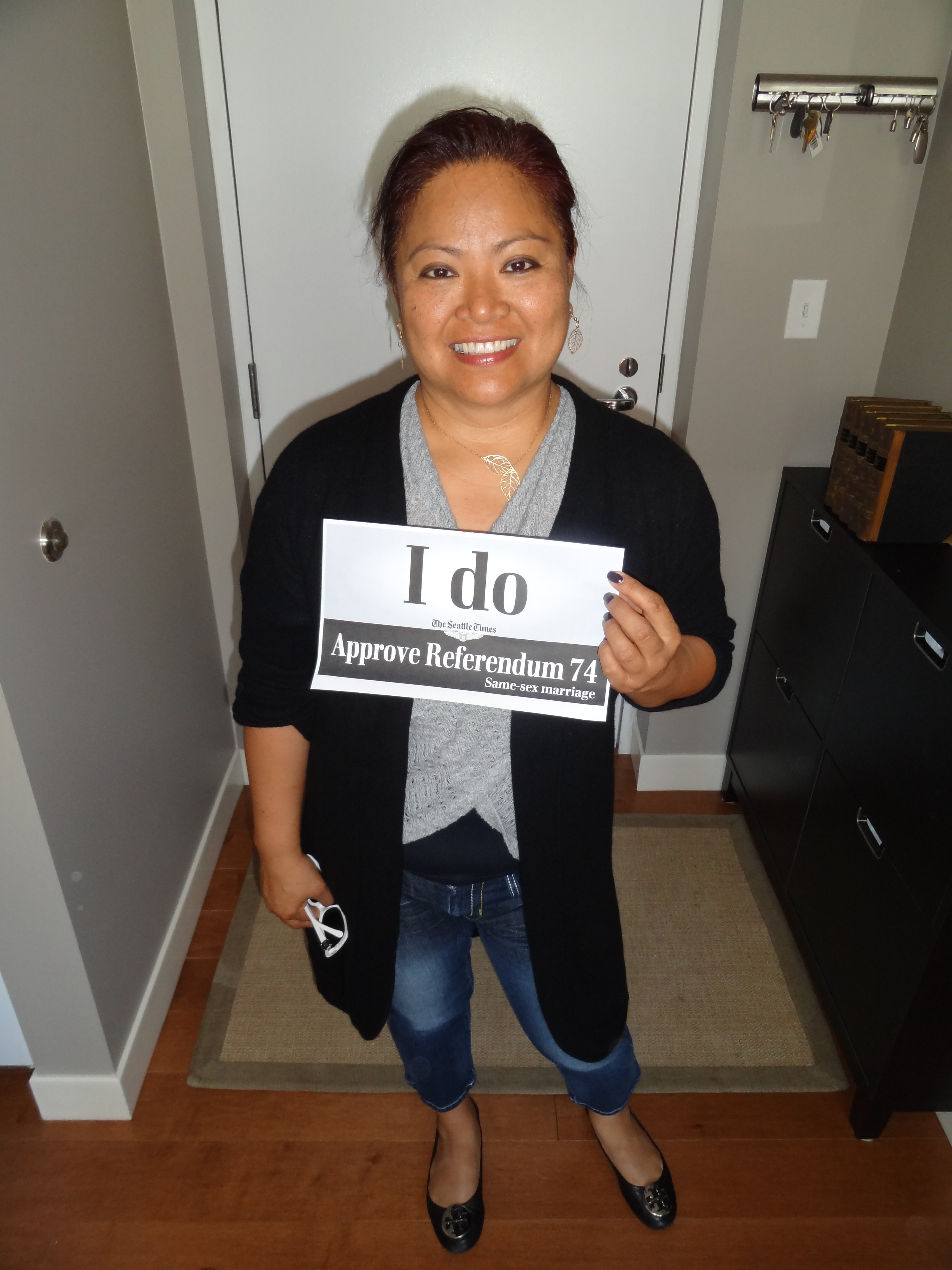 Last month I wrote about The Seattle Times “I do” social media campaign supporting the Marriage Equality referendum on their ballot in November. To show my support, each day this week I will post photos of people posing with The Seattle Times “I do” sign.