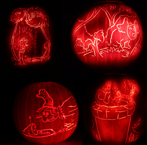 Part of our “Halloween tradition” which includes walking around part of the neighborhood is to stop by one particular home on Union Park Street because of their amazing pumpkin displays. This year had a Dr. Seuss theme. Below are photos of several of the Seuss O’Lanterns. As with the collection of photos above, click on the image to enlarge.