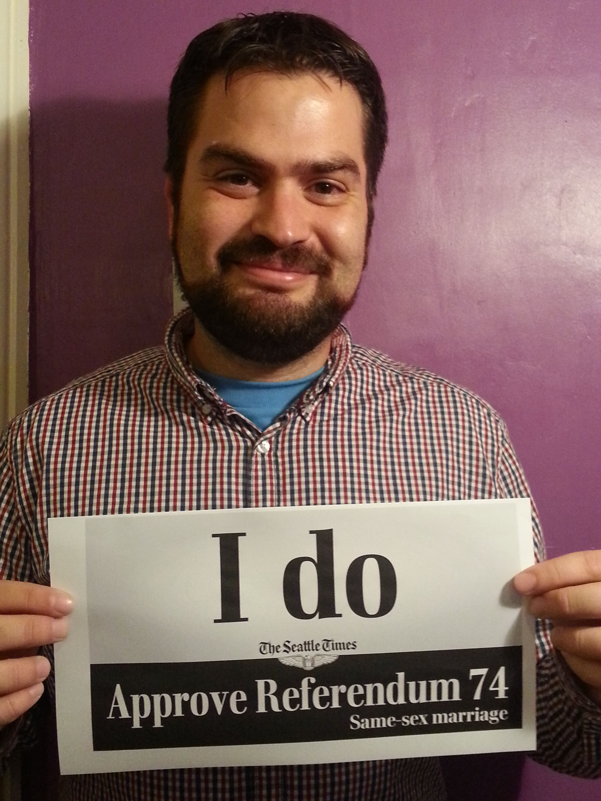 Last month I wrote about The Seattle Times “I do” social media campaign supporting the Marriage Equality referendum on their ballot in November. To show my support, each day this week I will post photos of people posing with The Seattle Times “I do” sign.