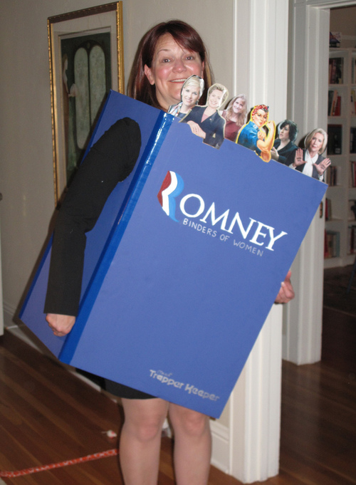 I know that Halloween has come and gone, but I just stumbled upon this image from Seduced By The New blog and had to share this costume of “Binders full of Women”.
