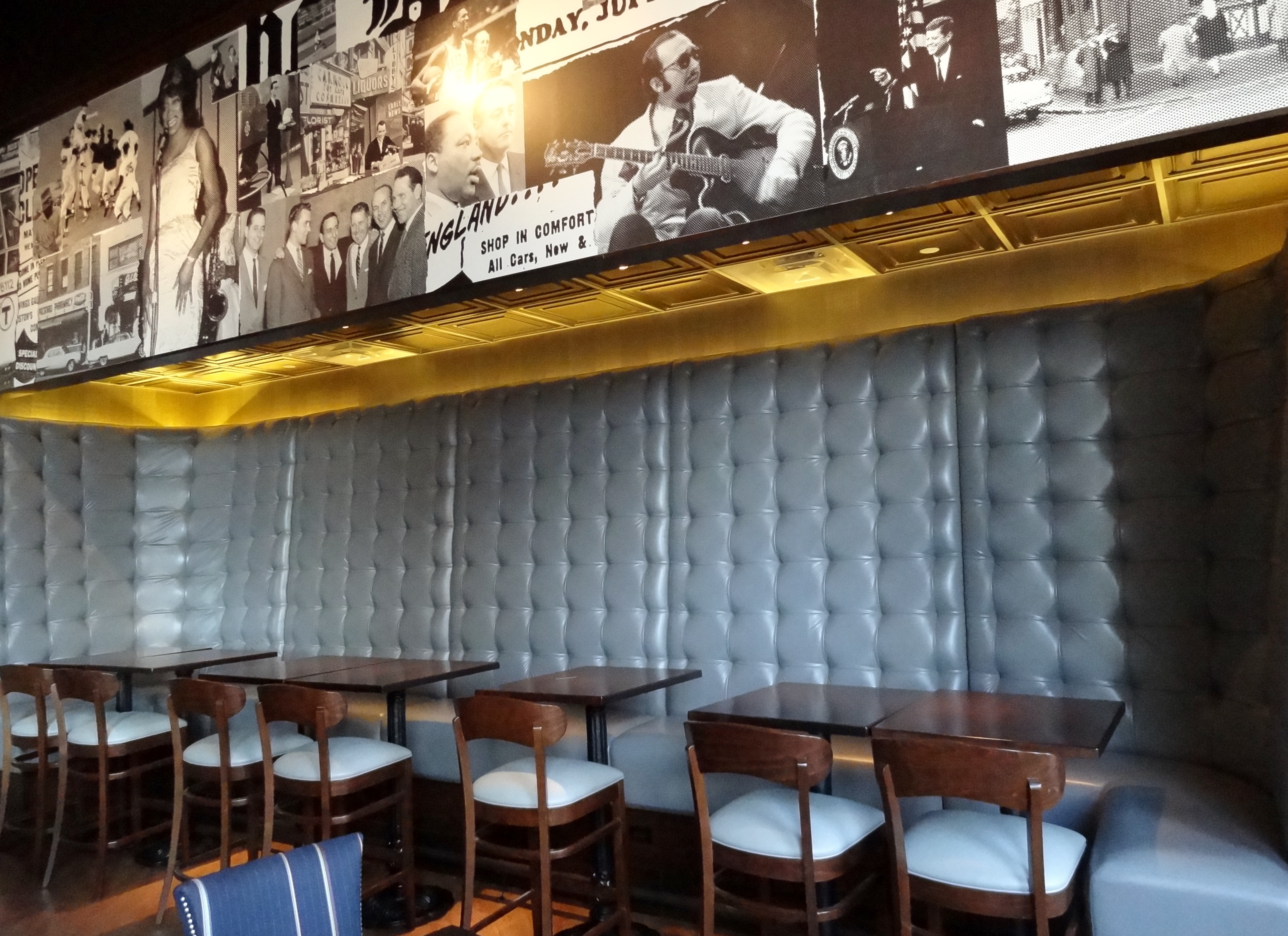Straddling Faneuil Hall and Boston’s Financial District, it isn’t hard to imagine professionals sipping martinis after work, while nibbling on bar snacks before heading home – and that is precisely what The Glynn Hospitality Group hopes will happen. Upon entering Sterling’s you will immediately recognize the decor is inspired by the early 1960s; or to put it in the context of current pop culture – think Mad Men. Menu prices range from $8 – $20, making this affordable enough to grab lunch or dinner regularly. Sterling’s will also have lots of options in the Bar Snacks section of the menu, that include items like stuffed quahogs ($8). The Appetizers & Salads section of the menu have prices ranging from $8-$12 and include items like moules frites.