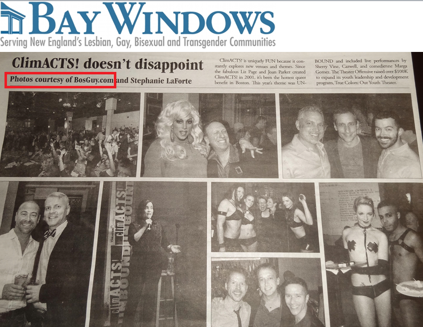 Some of the photos we snapped at the March fundraiser for the Theater Offensive’s climACTS! Unbound are in the current issue of Bay Windows, that dropped last Thursday.