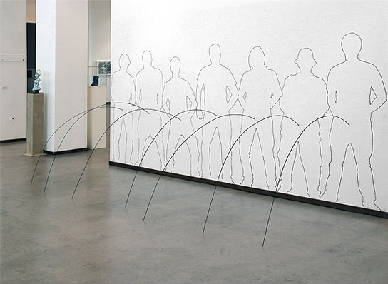 This art installation made of drawing marker and wire by Hamburg based Turkish artist Sakir Gökçebag made me laugh. I’m of the mindset that if an installation can evoke an emotional response or foster dialog there is probably merit to it even if you don’t always understand or appreciate it. I have to say I completely understand this and appreciate it. I’ve often said one of the best things about being a guy is being able to pee standing up.