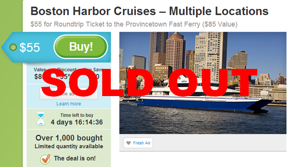 www.GroupOn.com (search by Boston Harbor Cruises in Boston)