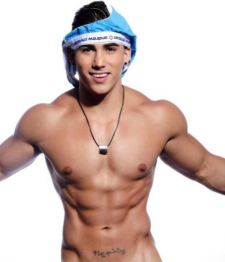 Whatever the merits of Andrew Christian underwear, you have to have a body that looks like this to pull off using the garment as a hat. I will admit that blue is definitely his color.