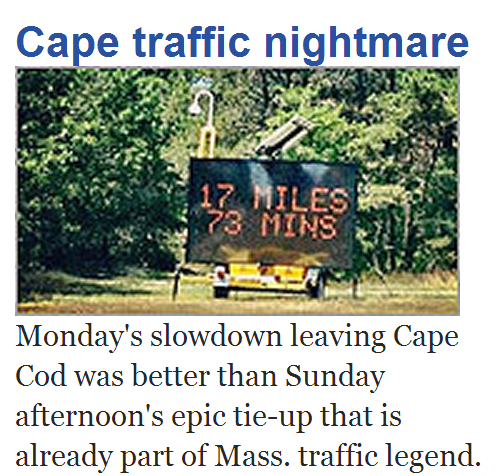 This was the article in The Boston Globe after epic traffic had many in their car for hours. Without traffic, Boston to Ptown takes approximately 2 hours. However, several friends spent more than 5 hours driving back home last weekend. My advice, take the ferry if you live in Boston.
