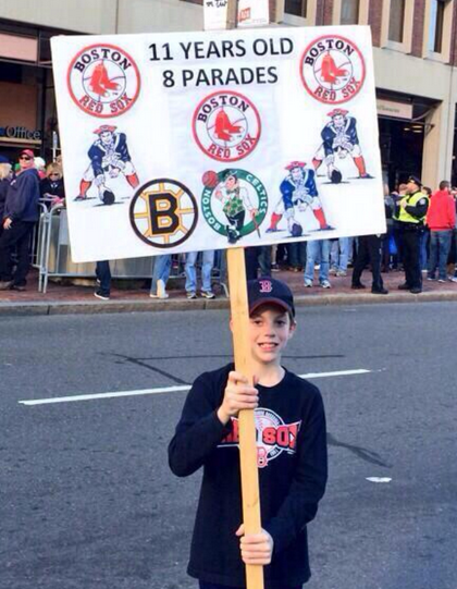 There was a relaxed atmosphere in the crowd that poured in from all over New England and beyond to see the parade.  This kid’s sign pretty much sums up Boston’s good fortune in recent years.