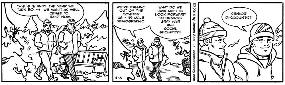ADAM & ANDY is set in the fictional New England town of Woodfield, CT.  You can learn more about this strip by visiting, adamandandy.com.