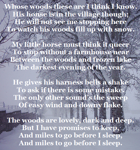 Poetry is not a form of prose often recited and it often goes over my head, but when I connect with a poem or on the rare occasion I write a poem it resonates in a way that is hard to describe. Here is a poem written by one of my favorite poets, Robert Frost.