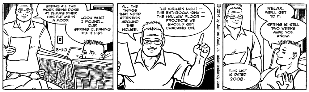 ADAM & ANDY is set in the fictional New England town of Woodfield, CT. You can learn more about this strip by visiting, adamandandy.com.