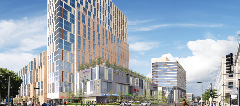Just a few blocks from the South End in Roxbury (near the Ruggles T station) is Feldco Development’s, Tremont Crossing. The large mixed use development spans 8 acres near the Melnea Cass Blvd / Tremont Street intersection.