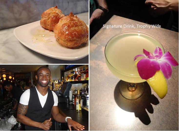 The redesigned space seems larger than before thanks to raising the ceilings, a large mirror over the bar to make the space seem wider, and relocating the entrance further up Chandler Street.  While I didn’t try anything to eat and can’t comment on the menu, the bar staff is handsome, friendly and fast; that combined with a familiar location and a nice redesign bodes well for the The Trophy Room.