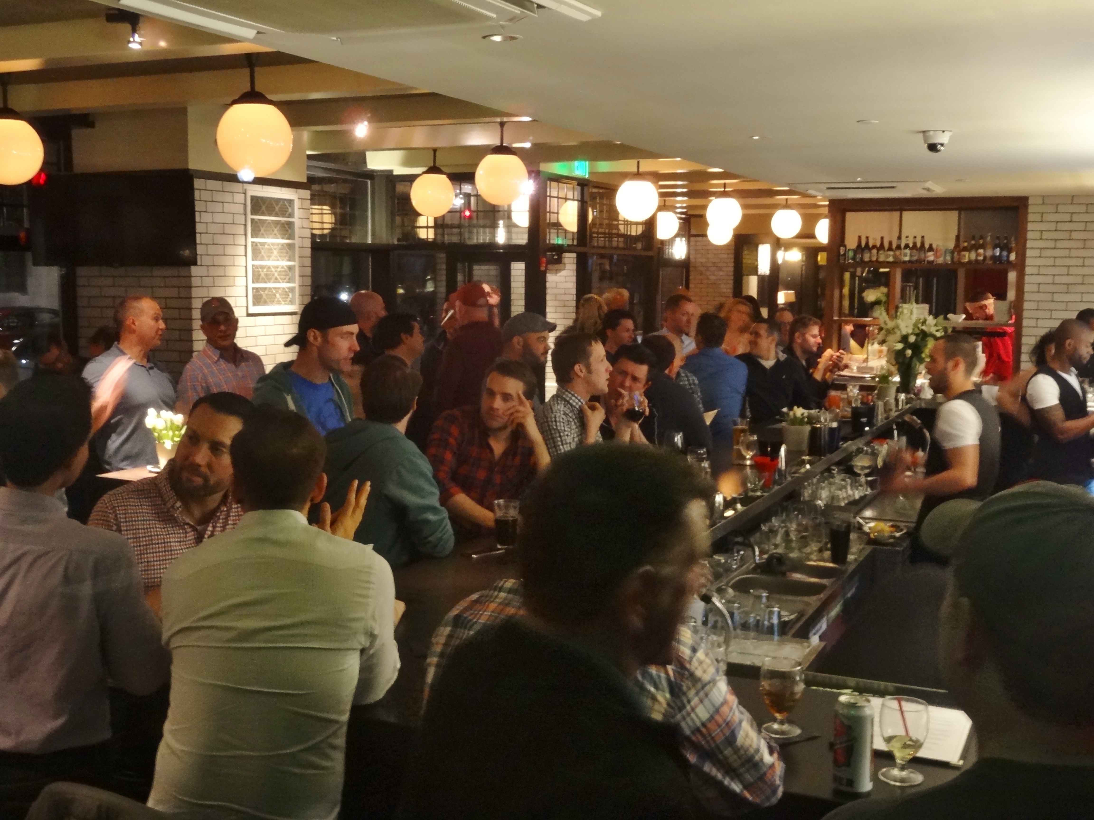 The Trophy Room had a soft opening on Thursday but as word spread the crowds came.  When I first arrived at 7:00 pm nearly half the bar was gay but by the time I left close to 9:00 pm (see photo above) it had noticeably tilted to a predominantly gay clientele.
