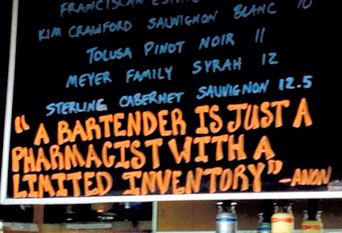 20140421-120634.jpg I’m certain that many of my friends who tend bar might also suggest they play the role of psychiatrist with the same inventory limitations.