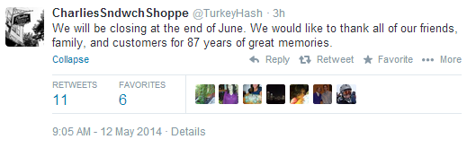 Earlier this morning, Charlie’s Sandwich Shoppe on Columbus Avenue in the South End, announced via Twitter that they would be closing at the end of June. Charlie’s first opened their doors in 1927 and has remained a popular cheap eats diner serving mostly South End residents, but through the years many a celebrity has stopped in to be photographed while enjoying some of their famous hash.