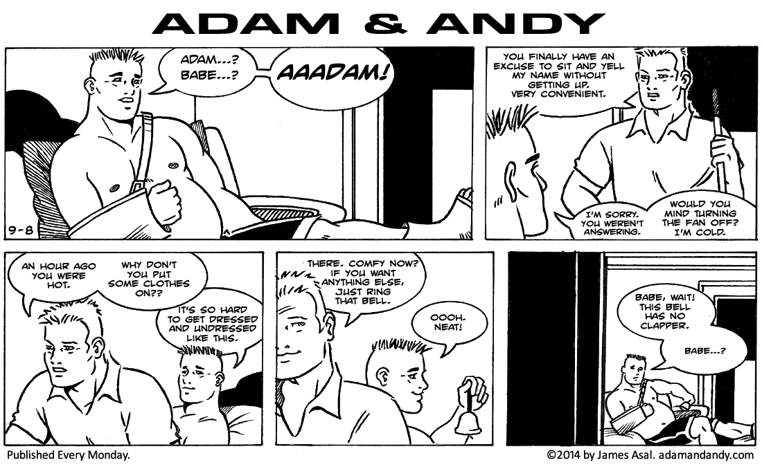ADAM & ANDY is set in the fictional New England town of Woodfield, CT. You can learn more about this strip by visiting, adamandandy.com.
