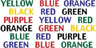 Look at the chart above and say the color (not the word). See how quickly you and others can do this accurately. The right side of your brain wants to say the color but the left side of your brain is focused on reading the word.