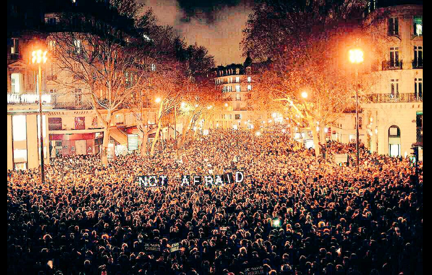 Below is an image that went viral last night on Twitter showing tens of thousands of Parisians braving bad weather to pour out into the streets with signs expressing their defiance.  It is like Tom Toles cartoon says, “but the pen will endure”.