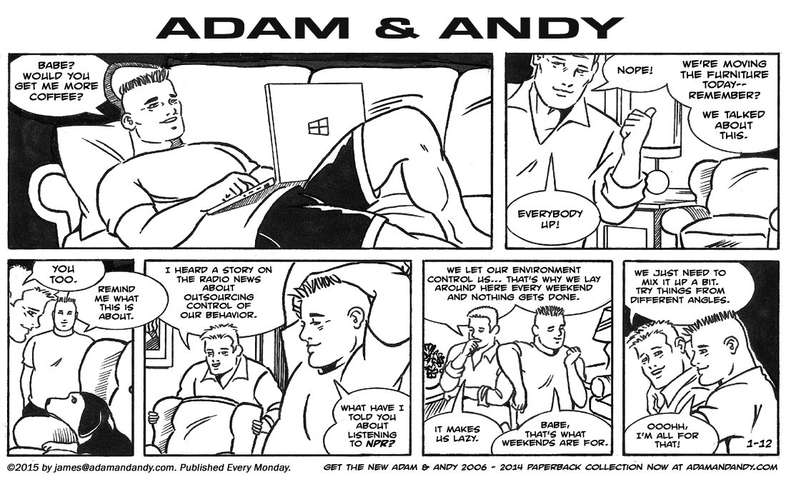 ADAM & ANDY is set in the fictional New England town of Woodfield, CT. You can learn more about this strip by visiting, adamandandy.com.