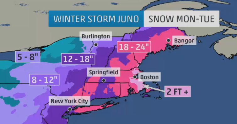 Winter Storm JunoOh crap… it looks like everyone just south of Boston will hit the jackpot with more than 2′ of snow (if weather forecasts are accurate).
