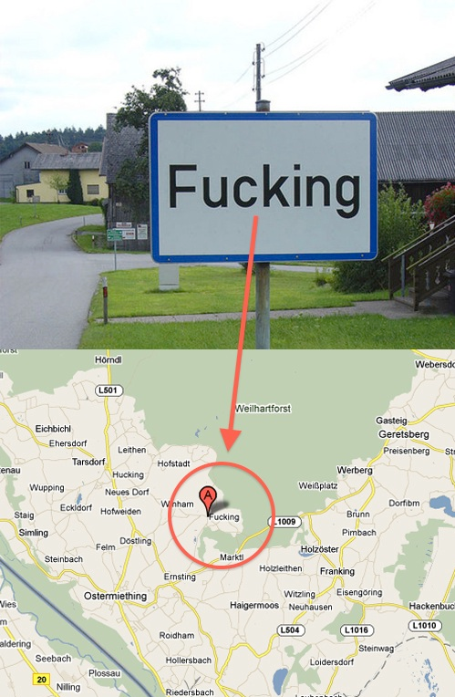2. Yes, I’ve actually been there, and it is a real village. It was written up in the paper there because stupid Americans kept stealing their village signs, and they had to start ordering them by the dozen. I lived in Austria for over seven years, and stories like this make me ashamed of my countrymen. The village had its name long before it was an American “dirty word (giggle, giggle…)” and no, I didn’t take my picture in front of the sign… It doesn’t mean the same thing in German. Those stealing the signs should show some respect.