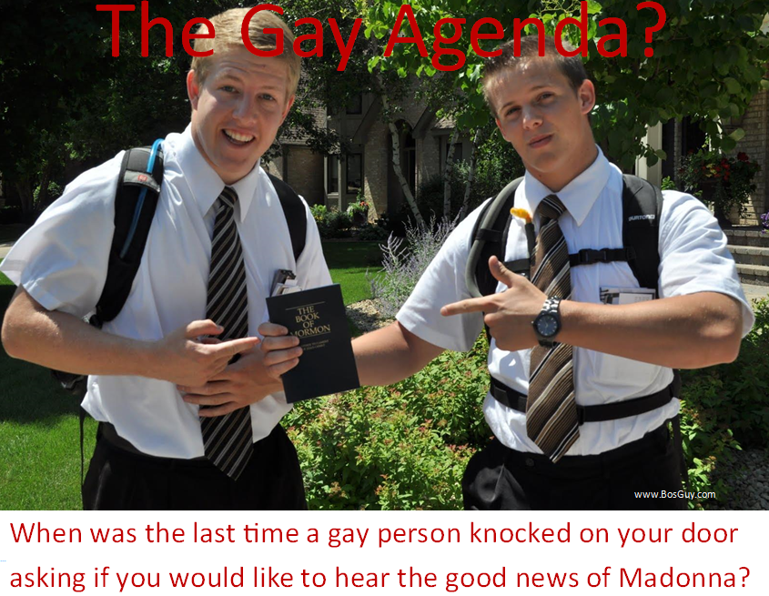 Gay agenda is one of my Twitter names with which I harass right wing and Christian whackos