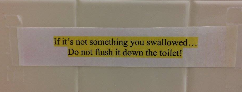 Much thanks to Raymond who reads my blog and shared this funny message his hotel in Rhode Island taped in the bathroom.