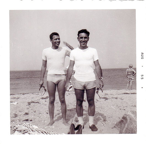 I know this is shallow of me, but, socks and loafers on a beach? The San Diego beach bunny in me is shuddering uncontrollably! I do love these vintage pics, though. 😉