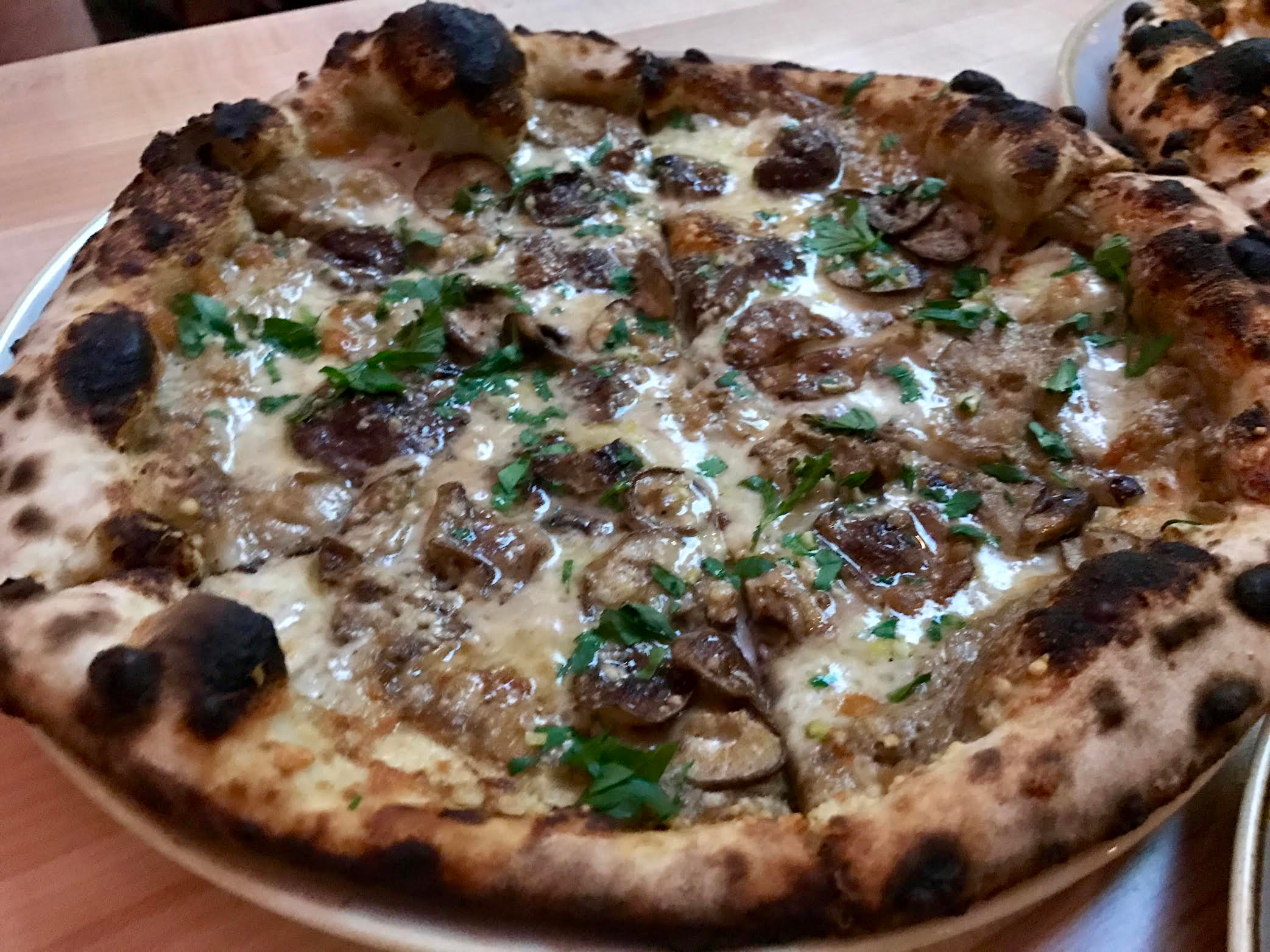 Shown below are the traditional Magherita Pizza with tomato, mozzarella, pecorino and basil – this was light and flavorful; the Shitake Mushroom & Fontina Pizza which had a creamy / earthy taste and was my favorite; followed by the Wellfleet Clam & Bacon Pizza that tasted salty initially from the bacon but finished with a nice kick thanks to the hot peppers.