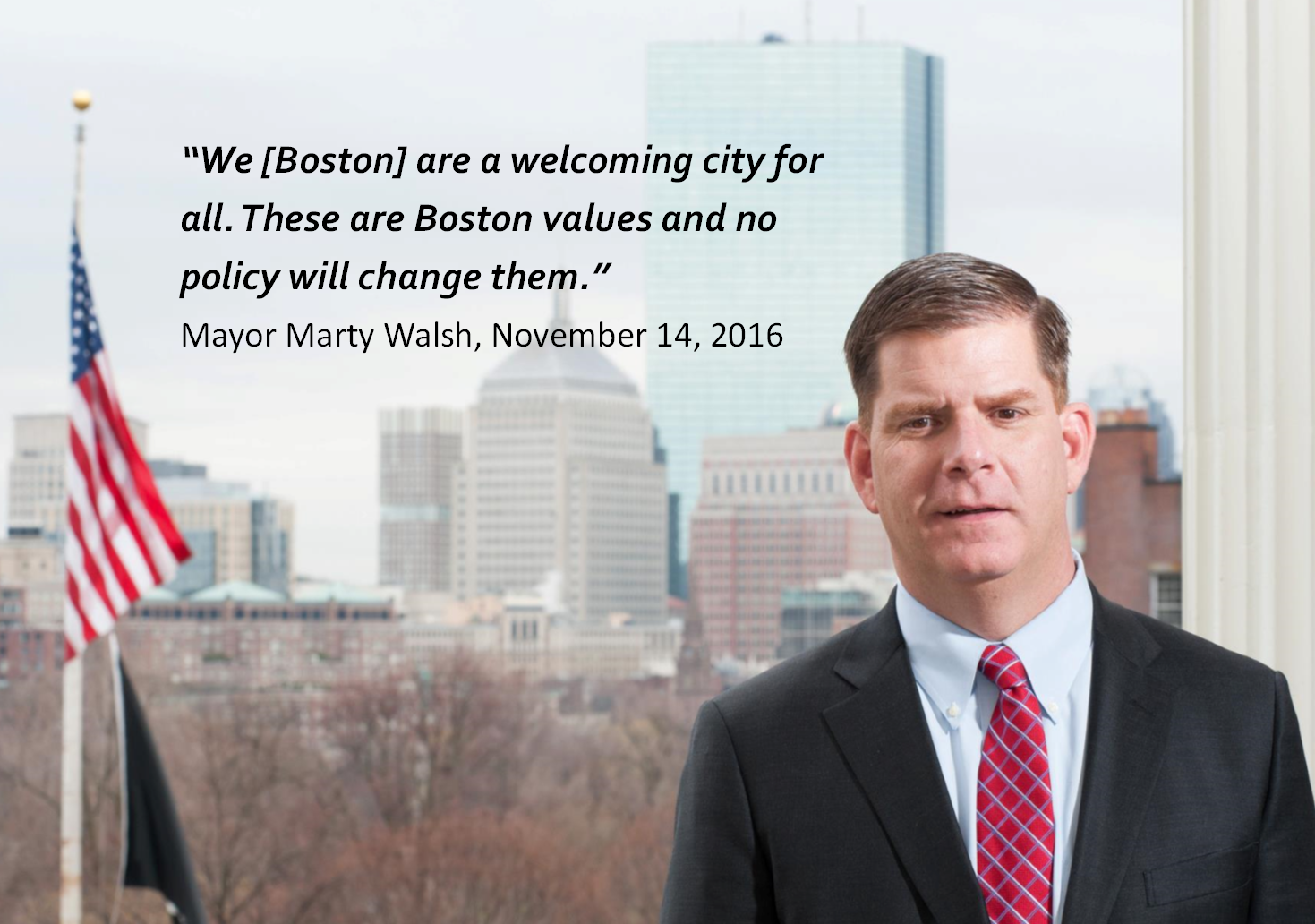Recently San Francisco made news by passing a resolution, indicating they intend to remain a sanctuary city. I’m proud that Boston’s Mayor as well as mayors from several surrounding cities including Cambridge and Somerville have also repeated that they will remain a sanctuary city even if it means losing federal funding which could happen, considering President-elect Trump has pledged to move against sanctuary cities financially, saying,“We will cancel all federal funding to sanctuary cities.”