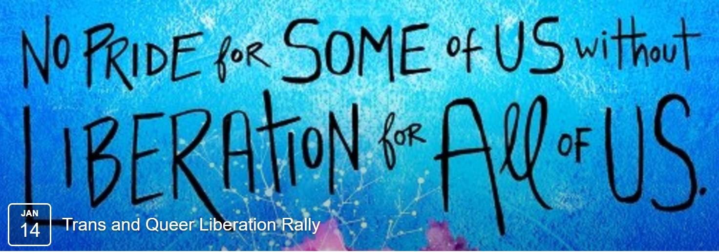 Trans Queer Liberation Rally at the State House starts at 2PM on Saturday, January 14 in Boston