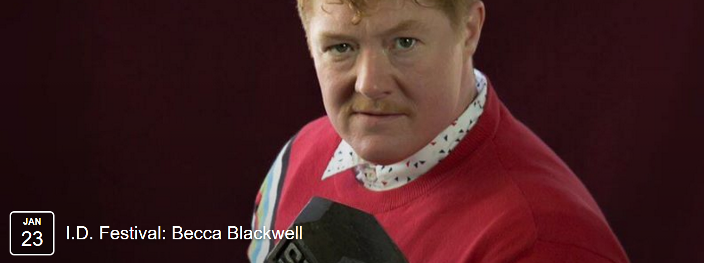 Becca Blackwell (Monday, January 23 at 7:30PM) Transactivist performer and downtown New York theater star Becca Blackwell’s They, Themself and Schmerm is a fiercely vulnerable solo piece that details the tragic-comic transitions in life, family, sex, and gender. Buy Tickets