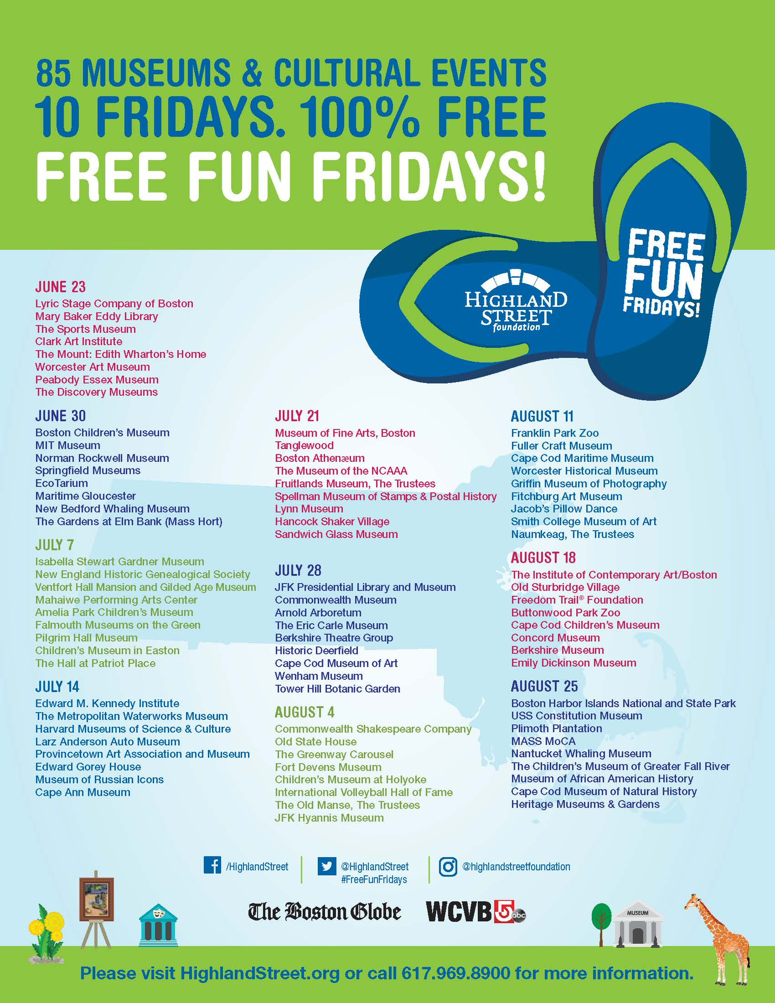 The Highland Street Foundation is sponsoring Free Fun Fridays again this summer, starting this Friday, June 23rd. The program is designed to increase access and enrichment opportunities for children and families throughout Massachusetts during the summer months.